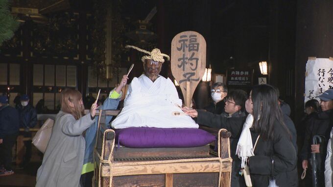 「びんずる様」をなでると病気が治ると言われていて、参拝者は受け取ったしゃもじで像をなで、今年の無病息災を願っていました。