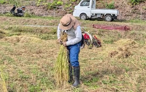 はぜかけしたわらを使っているため、稲刈りを手伝ってわらを譲ってもらっているといいます。