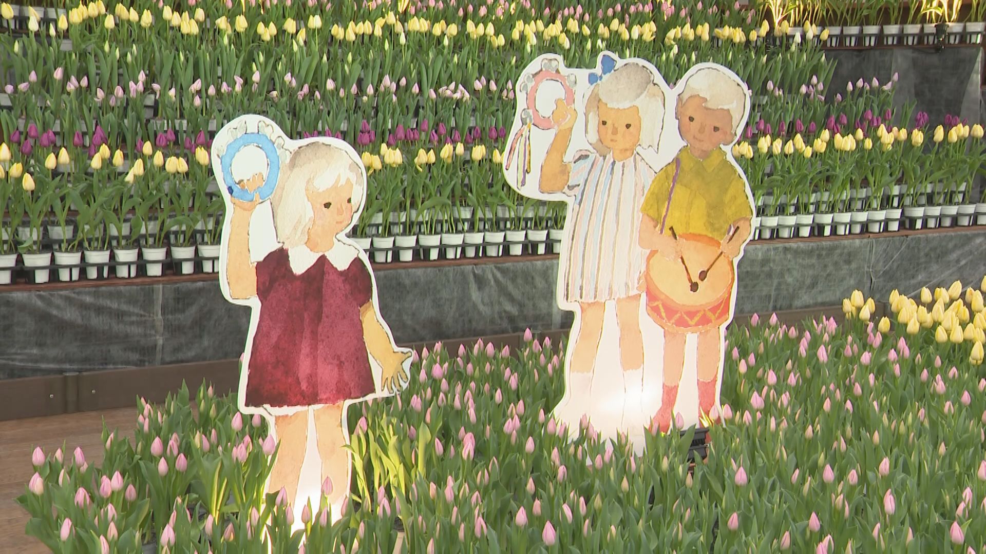 今年は壁や花壇にいわさきちひろさんが描いた子どもの絵などが飾られ、色とりどりの花とのコラボレーションも見どころのひとつです。