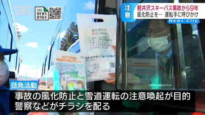 長野県軽井沢町で、大学生など15人が死亡したスキーバス事故から15日で9年となるのを前に、バスの運転手への注意喚起が行われました。