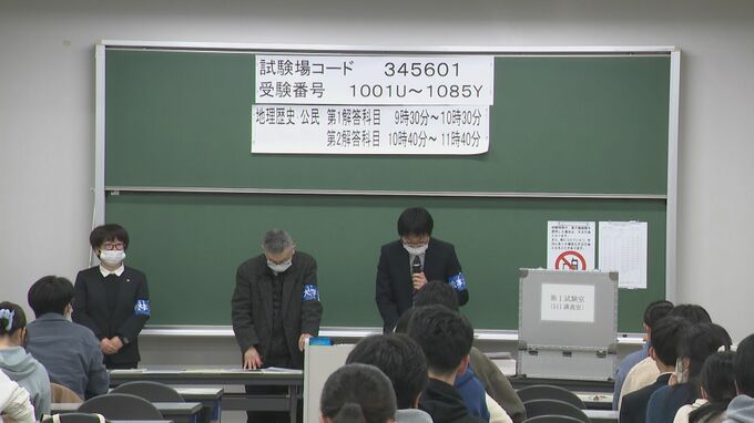 受験生は試験室で注意事項などの説明を受けたあと、午前9時半から「地理歴史,公民」の試験に臨みました。