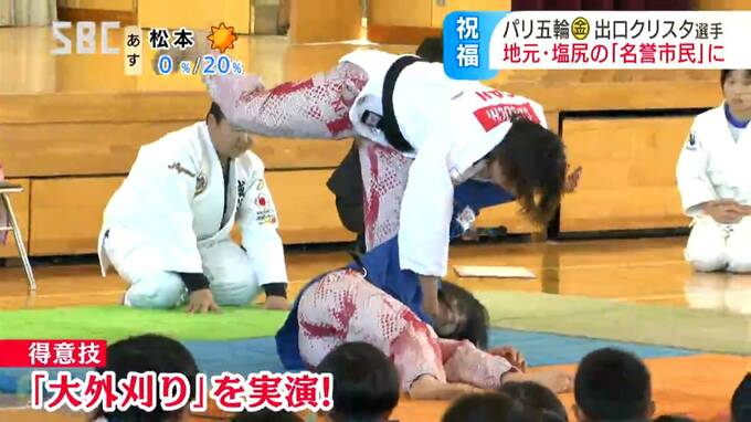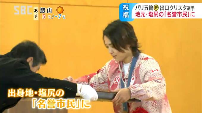 パリオリンピック™の柔道女子57キロ級で金メダルを獲得した塩尻市出身の出口クリスタ選手に、21日、「名誉市民」の称号が贈られました。