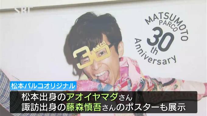 また、松本出身のダンサー、アオイヤマダさんや、諏訪出身のタレント藤森慎吾さんを起用した松本パルコのオリジナルポスターも展示されています。