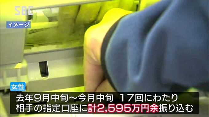 その後、女性は2024年9月中旬から1月中旬までの間、17回にわたり相手から指定された口座に合わせて2595万円余りを振り込みました。