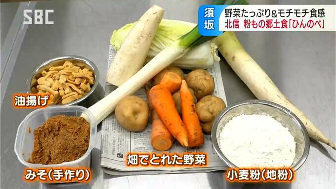 「ひんのべ」は生地を引き伸ばして入れるところから、その名がついたとされる北信の郷土食。