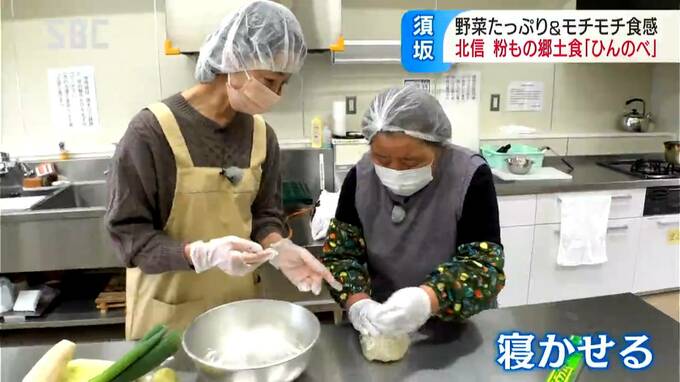 「じゃあこれをひっちぎって平べったく、それでこうやって食べやすい大きさに切って入れるの。引っ張って伸ばしてひんのべ」