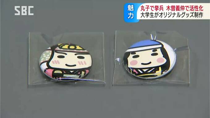 上田市丸子地域の活性化に役立ててもらおうと、大学生が地域にゆかりがある武将、木曽義仲のグッズを制作しました。