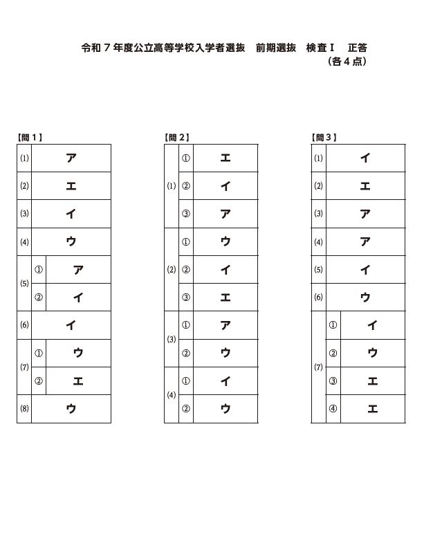 検査Ⅰ(国語・社会・英語)の正答・正答例
