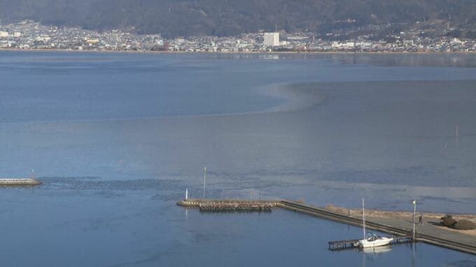 諏訪湖の湖面が凍ってできる「御神渡り」は、今年も出現せず、7シーズン連続の「明けの海」となりました。