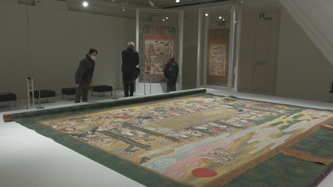 中には一辺が4メートル以上という迫力ある涅槃図も展示され訪れた人たちがじっくりと見入っていました。