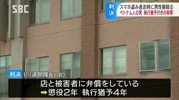 千曲市の店舗でスマートフォンを盗み、客にけがをさせたベトナム人の男に17日、執行猶予付きの有罪判決が言い渡されました。