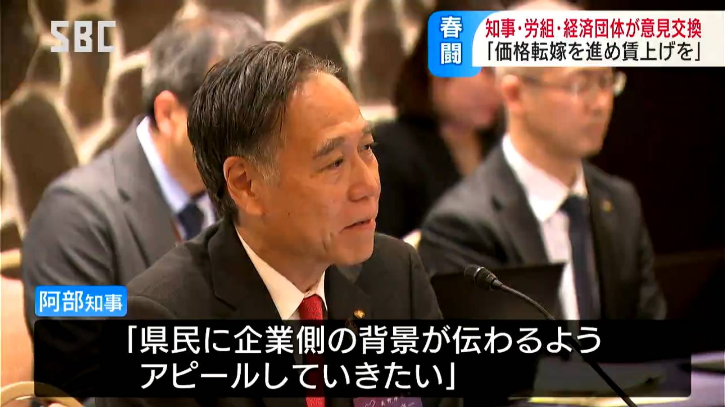 春闘での賃上げの機運を高めていくため、17日、長野県の阿部知事と労働組合、経済団体の代表者が意見交換しました。