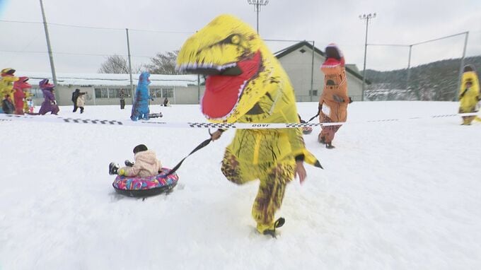 ティラノサウルスが大混戦!雪上を駆け抜ける…特産のリンゴを拾ってゴールへ 長野県飯綱町 2025年2月24日(月) 20:00 国内 3連休、長野県飯綱町では、雪まつりが開かれ、ティラノサウルスが雪上を駆け抜けるレースに人気が集まりました。雪に覆われた会場では、ティラノサウルスのコスチュームを着た参加者が最初に体操をして体をほぐし…