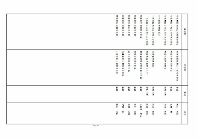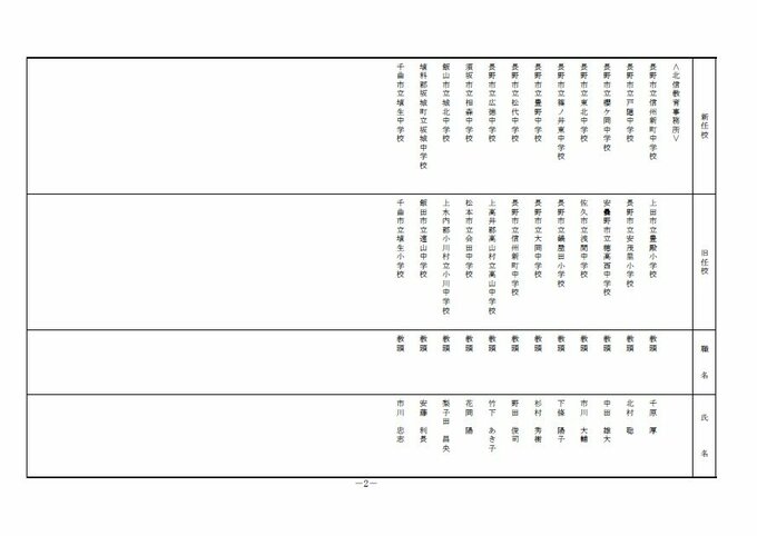 【小中学校の校長教頭など634人の全氏名掲載】女性29人が校長に 教頭は28人【長野県教職員人事異動2025】総数は3321人「あの先生はどこへ?」 2025年3月24日(月) 15:55 国内 □中学校教頭 転任 □中学校教頭 新任 □中学校教頭 退任
