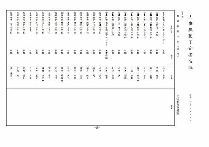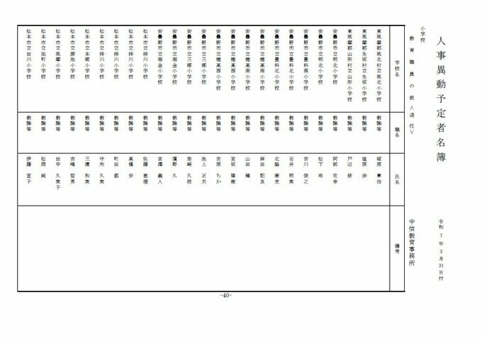 長野県教職員人事異動2025「あの先生はどこへ?」【小学校・中学校教諭など一覧掲載】