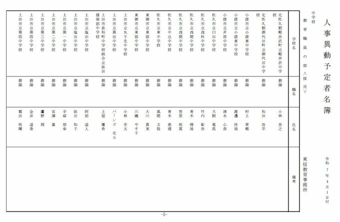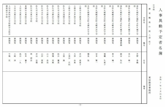 長野県教職員人事異動2025「あの先生はどこへ?」【小学校・中学校教諭など一覧掲載】