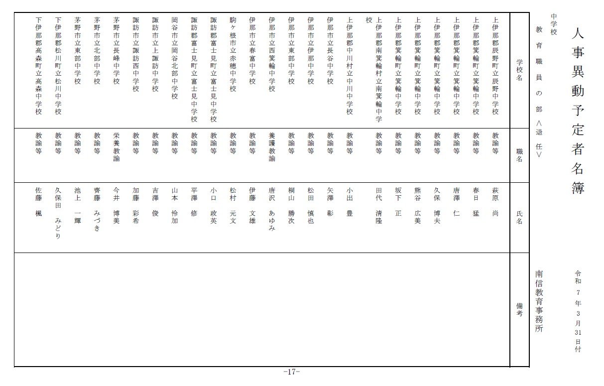 長野県教職員人事異動2025「あの先生はどこへ?」【小学校・中学校教諭など一覧掲載】