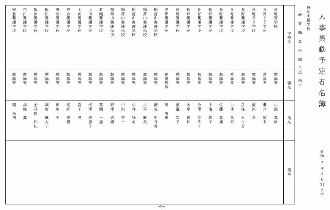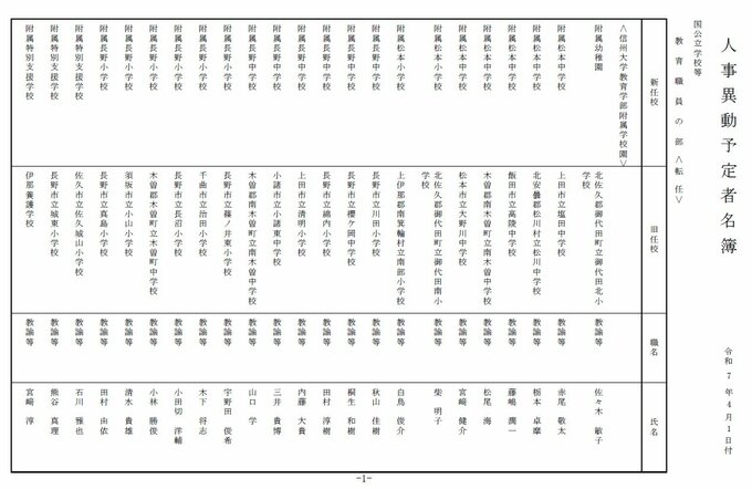長野県教職員人事異動2025「あの先生はどこへ?」【小学校・中学校教諭など一覧掲載】