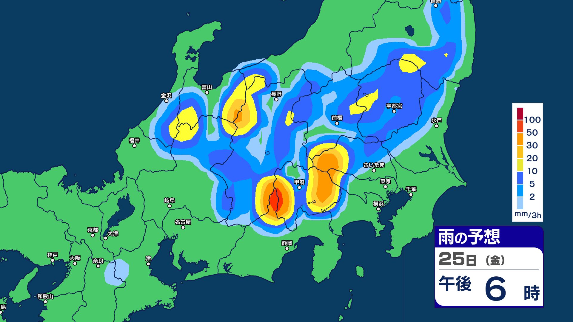 3. 【大雨情報】関東甲信 大気の状態が非常に不安定に 23日夜遅くにかけ 警報発表地域が拡大する可能性 【雨のシミュレーション】関東北部100ミリ 関東南部・甲信80ミリ(~24日午後6時・多い所)気象庁