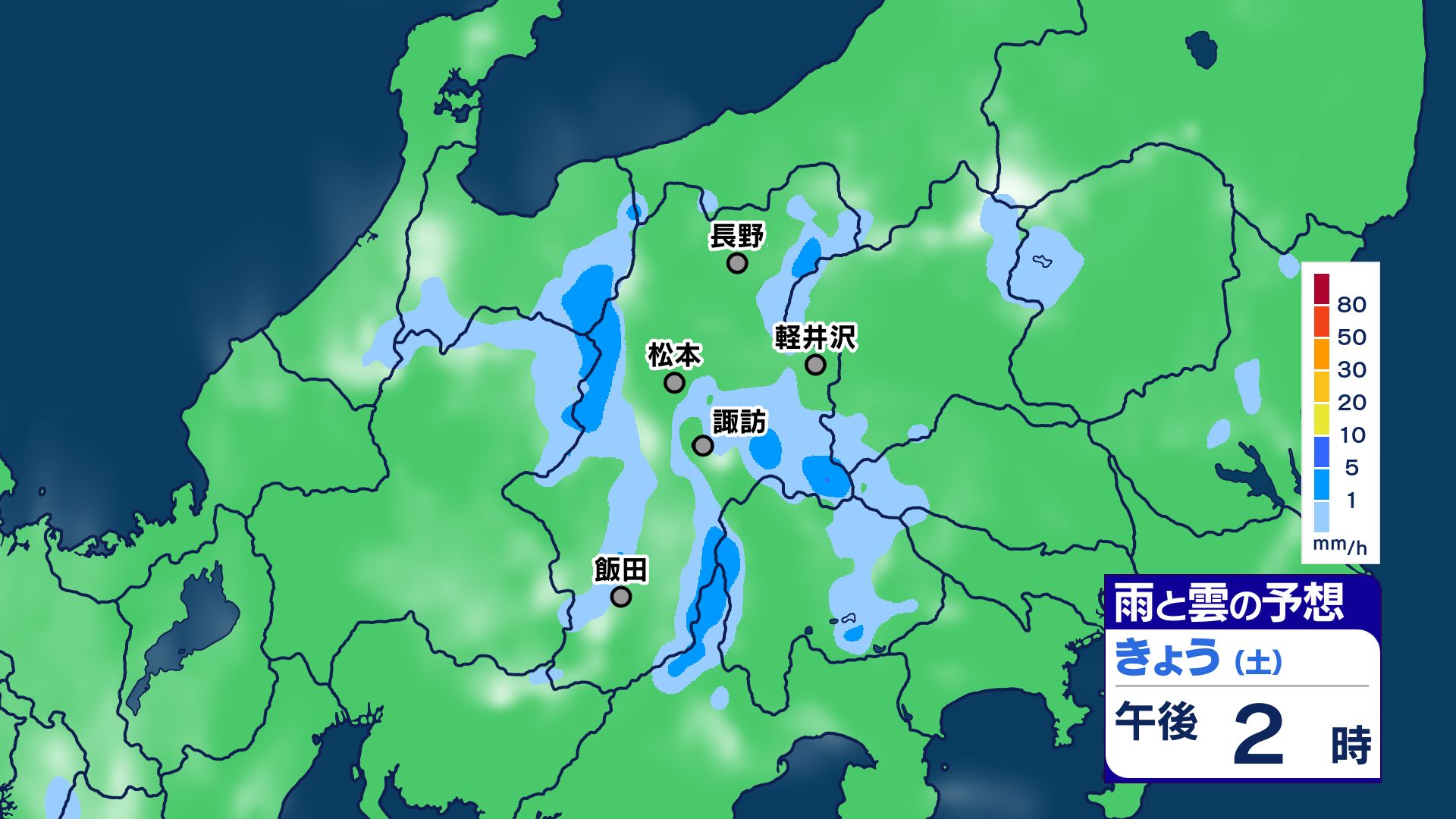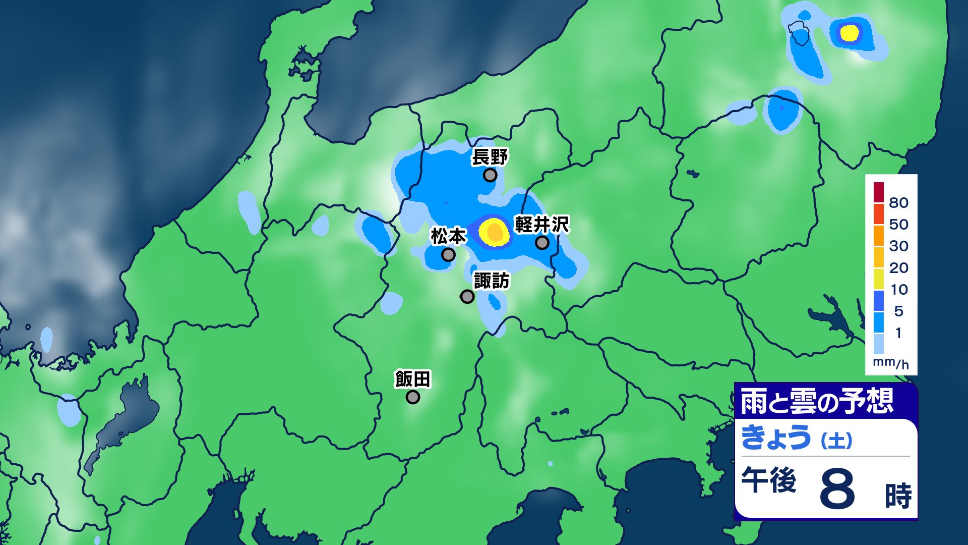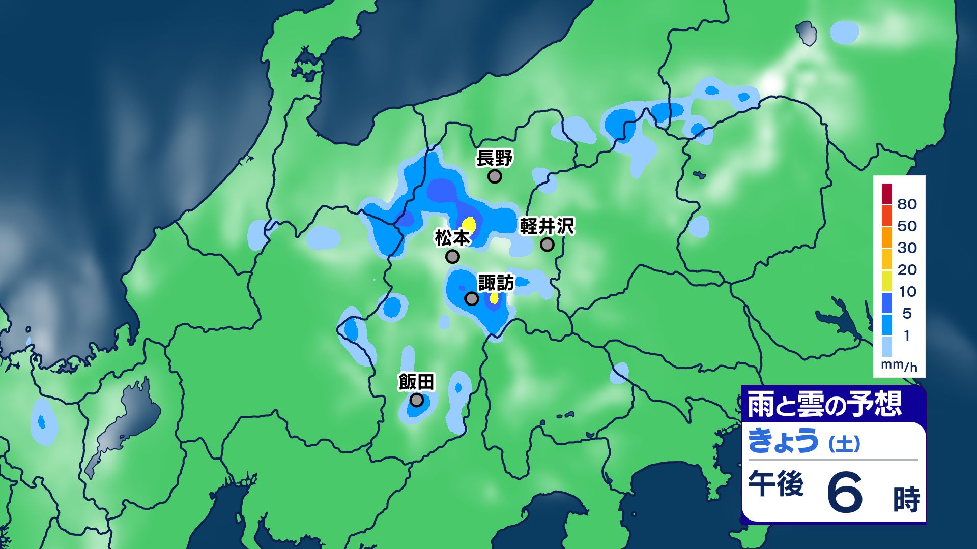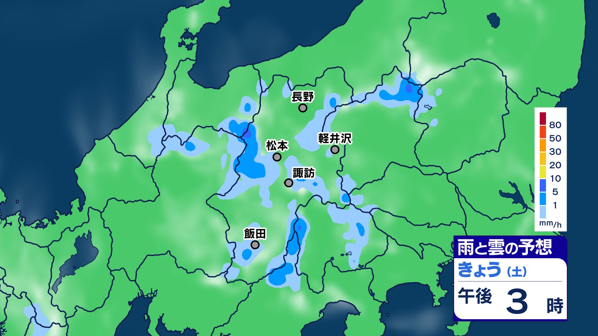 3. 【大雨情報】長野県は大気の状態が非常に不安定に 警報級の大雨のところも 26日昼過ぎから夜遅くにかけ【雨のシミュレーション画像】県内全域80ミリ(~27日午前6時・多い所)長野地方気象台