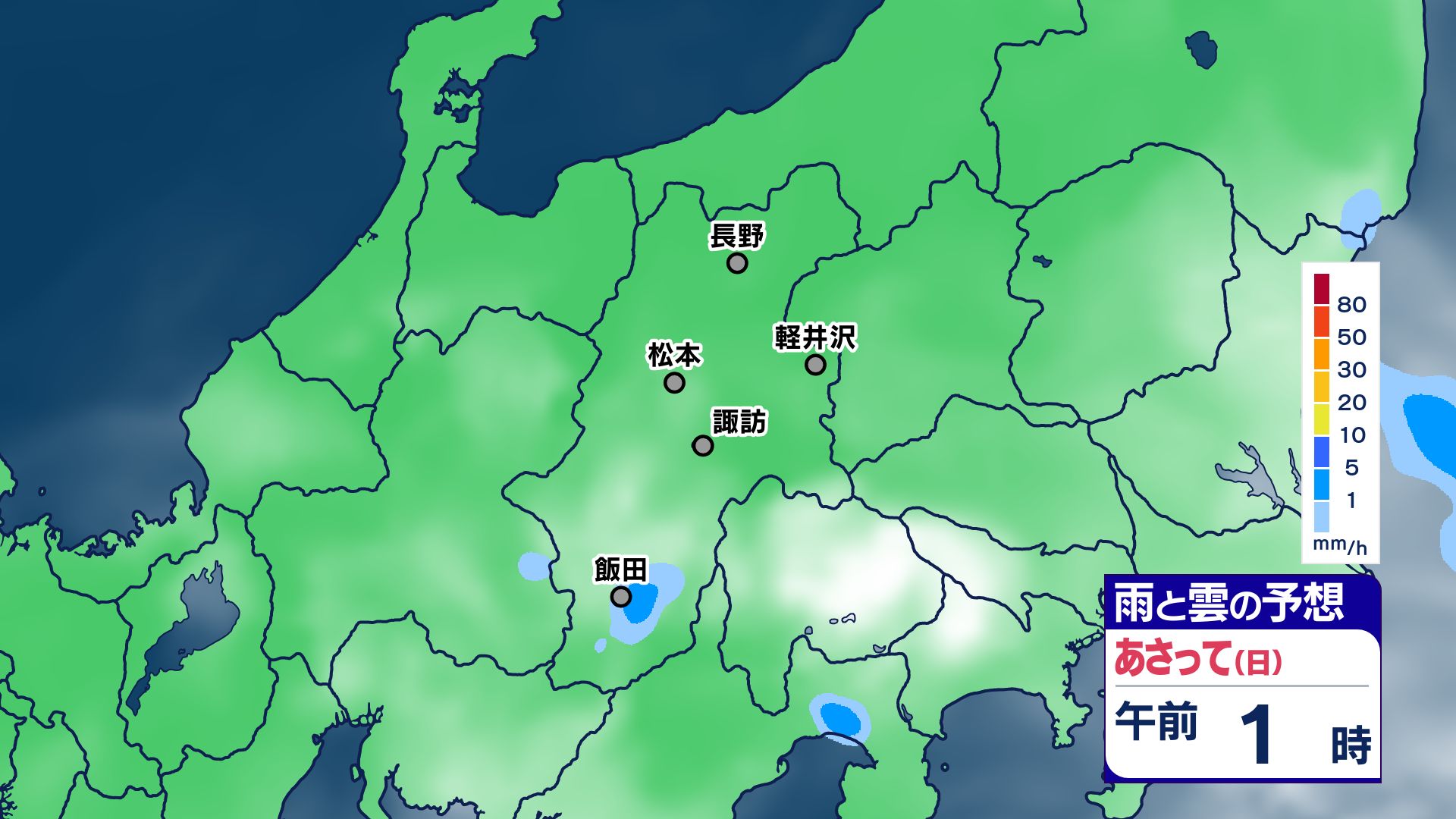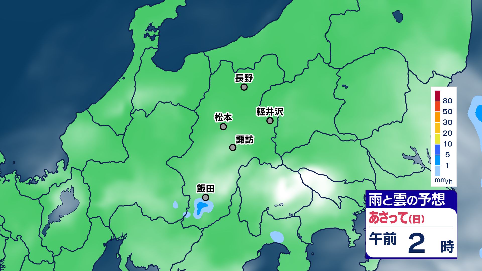 【大雨情報】長野県内 2日昼過ぎから夜遅くにかけ 大気の状態が不安定に【雨のシミュレーション画像掲載】北部60ミリ 中・南部80ミリ(~2日午後6時・多い所)長野地方気象台 2025年8月1日(金) 16:39 国内