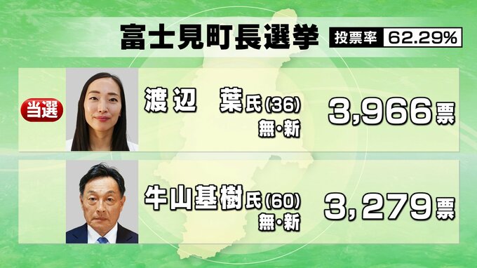 任期満了に伴う長野県富士見町の町長選挙は3日投開票され、無所属の新人で、前の町議会副議長・渡辺葉さん36歳が初当選を果たしました。