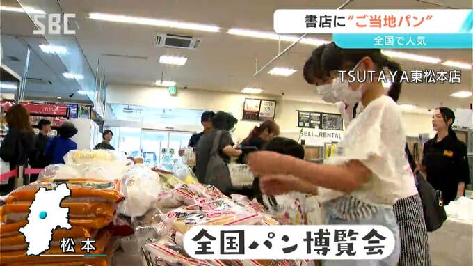 松本市元町のTSUTAYA東松本店で6日から始まった「全国パン博覧会」。北海道から沖縄まで、地元で愛される「ご当地パン」126種類が集まりました。