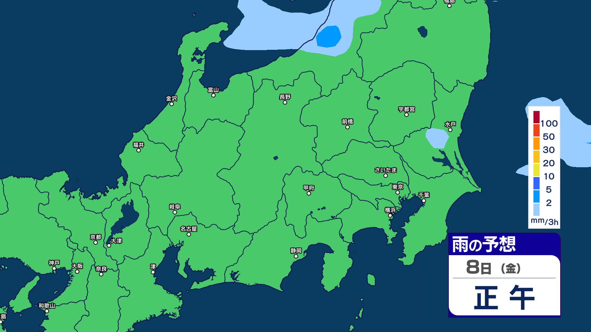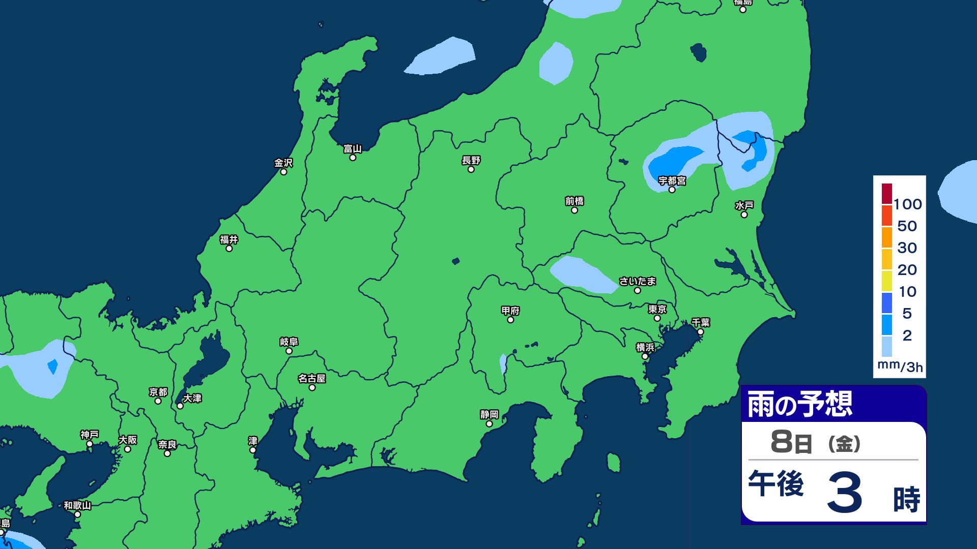 関東甲信地方では、8日昼過ぎから夜のはじめ頃にかけて、雷を伴