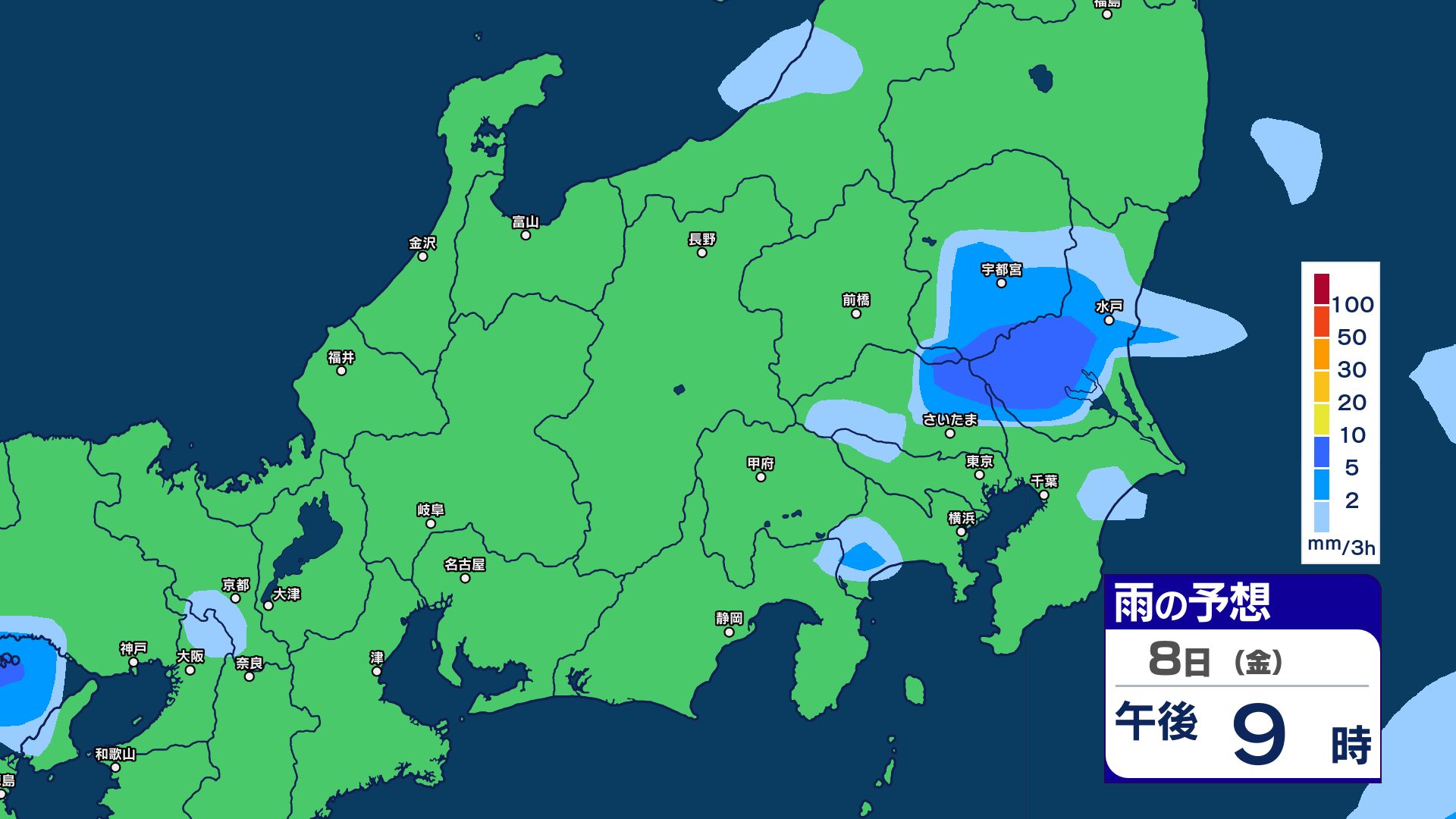 関東甲信地方では、8日昼過ぎから夜遅くにかけて、土砂災害や低