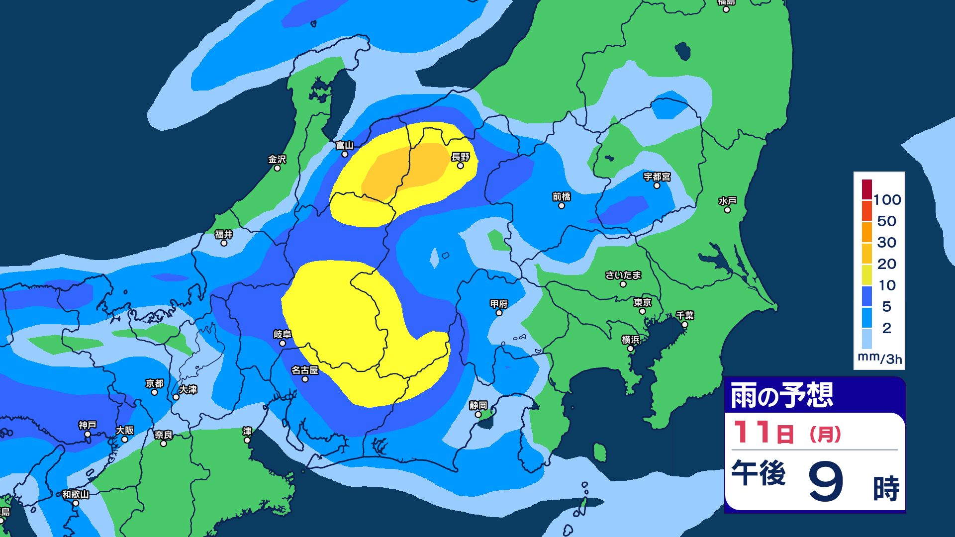 3. 【大雨情報】長野県内 “警報級の大雨の可能性” 10日~11日頃にかけて 24時間予想降水量は多い所・北部50ミリ 中部100ミリ 南部120ミリ【雨のシミュレーション画像掲載】長野地方気象台