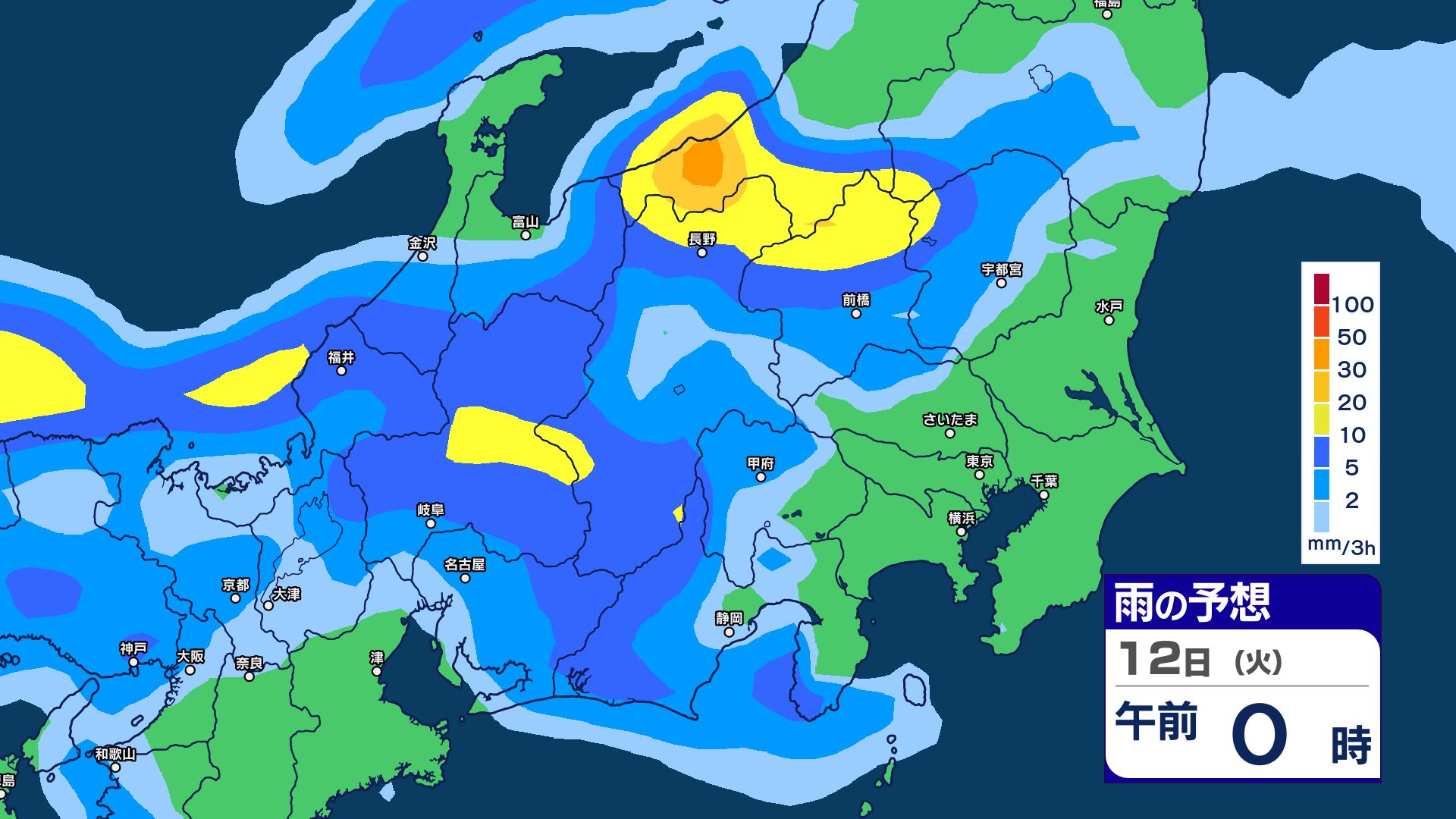 3. 【大雨情報】長野県内 “警報級の大雨の可能性” 10日~11日頃にかけて 24時間予想降水量は多い所・北部50ミリ 中部100ミリ 南部120ミリ【雨のシミュレーション画像掲載】長野地方気象台
