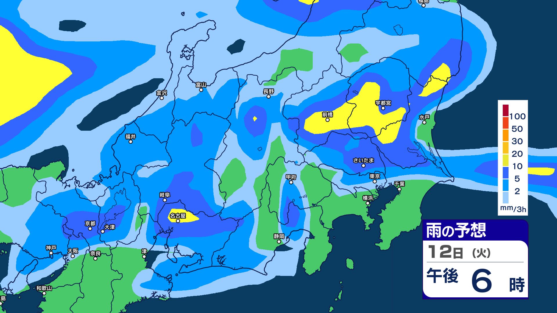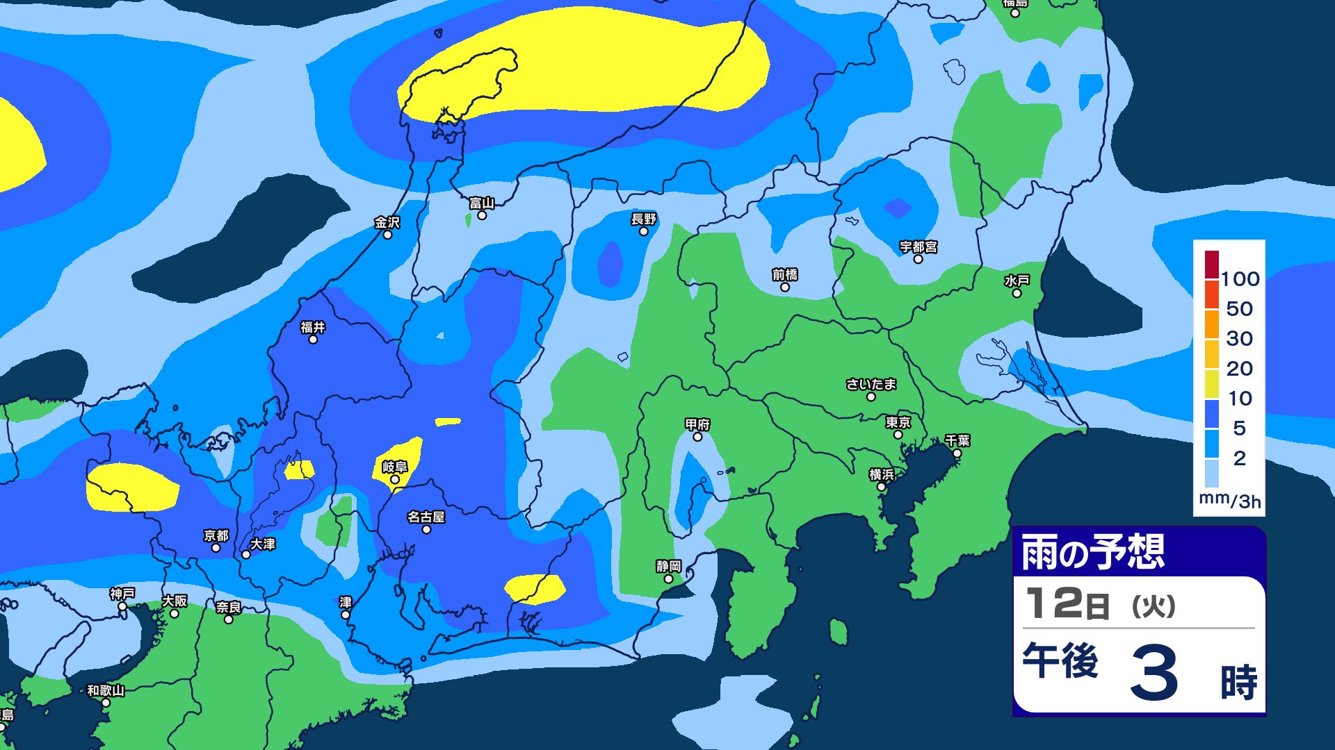 ▼13日の雨のシミュレーション