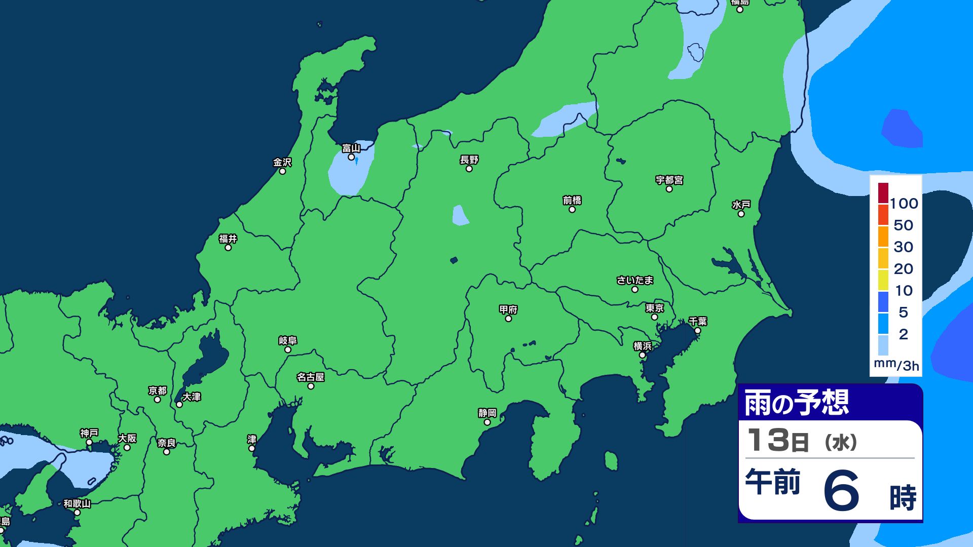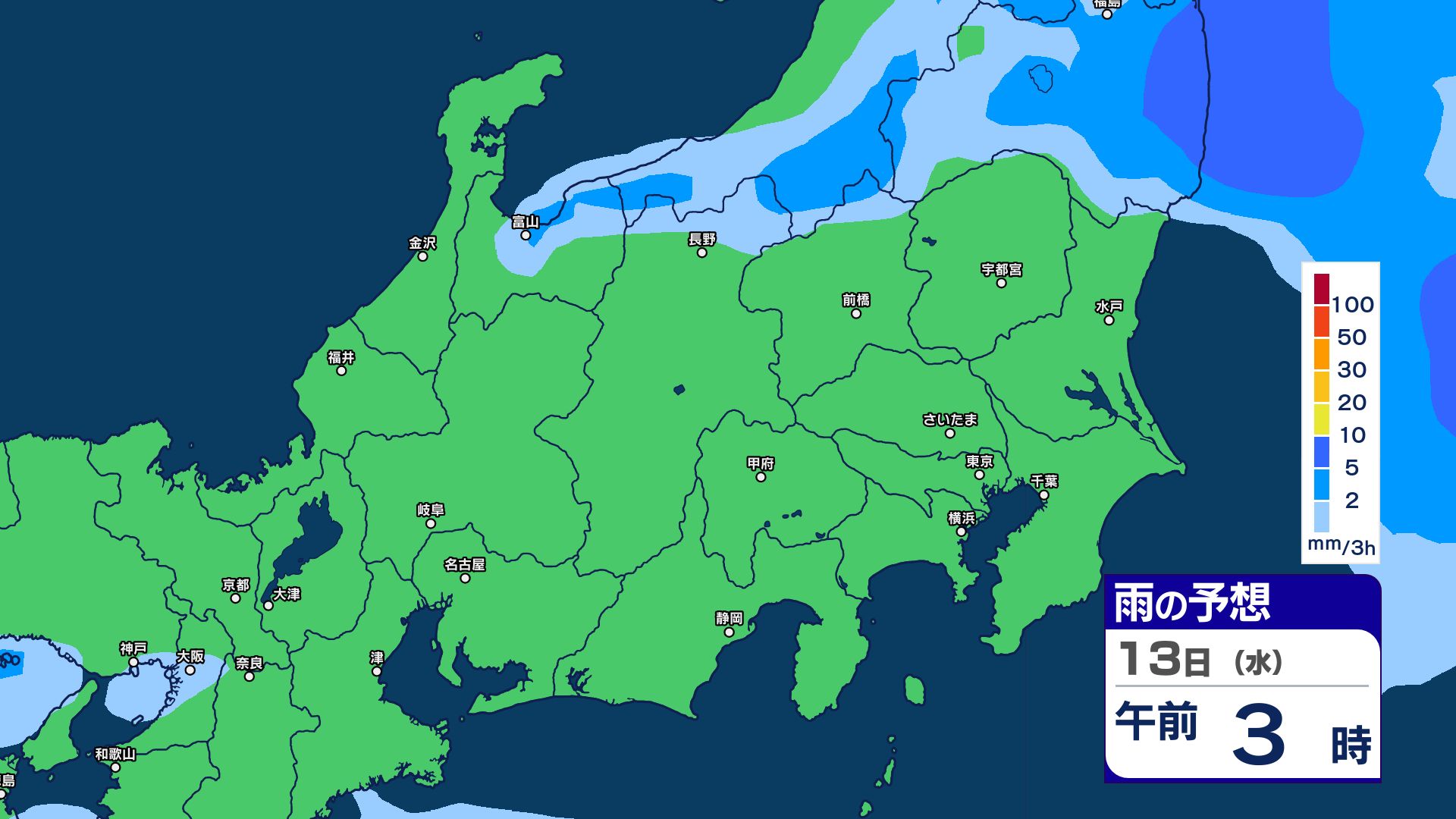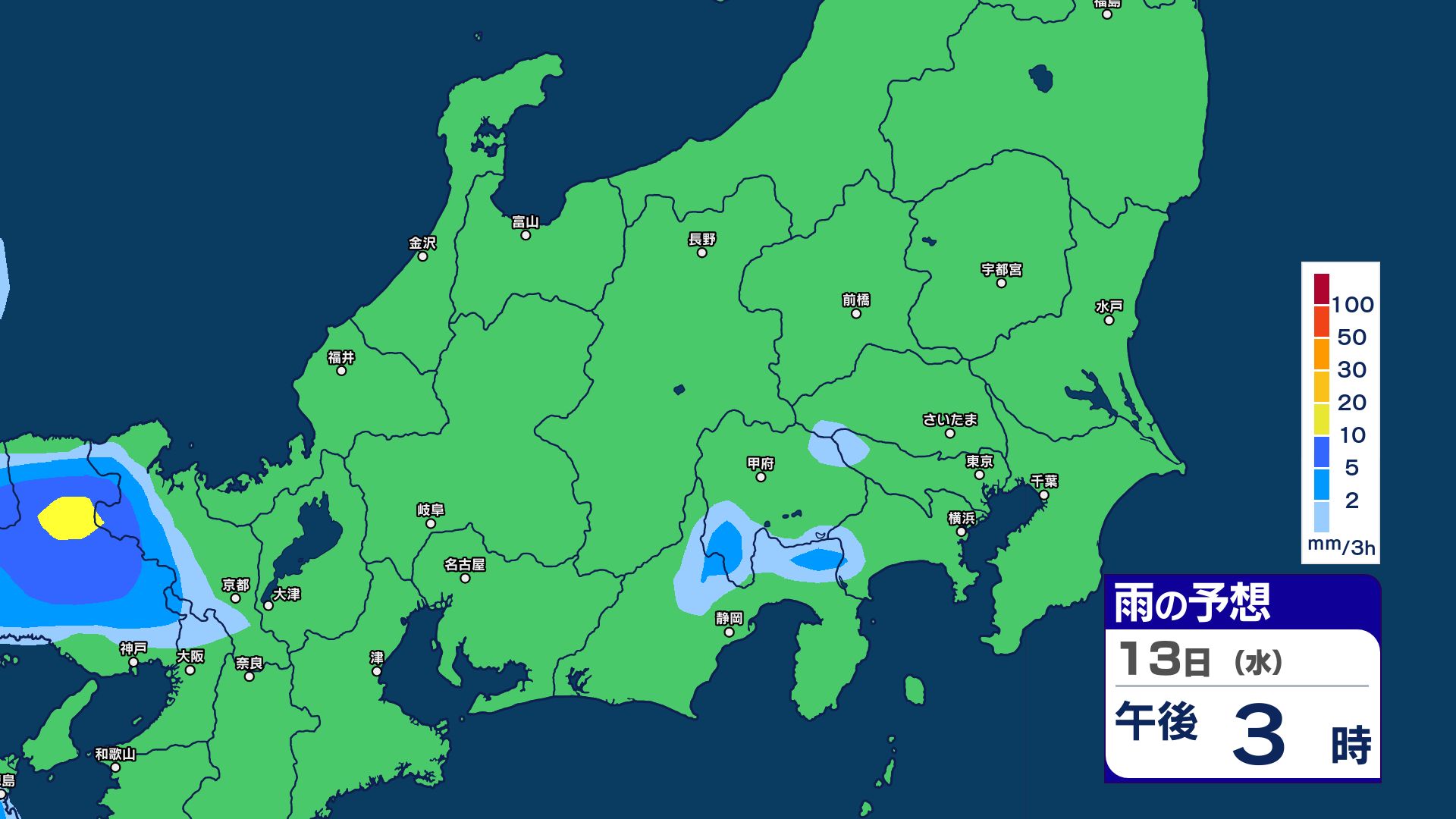 3. 【大雨情報】関東甲信 13日明け方にかけて土砂災害などに注意・警戒【雨のシミュレーション画像掲載】 関東南部60ミリ 甲信80ミリ(~13日午前6時・多い所)気象庁