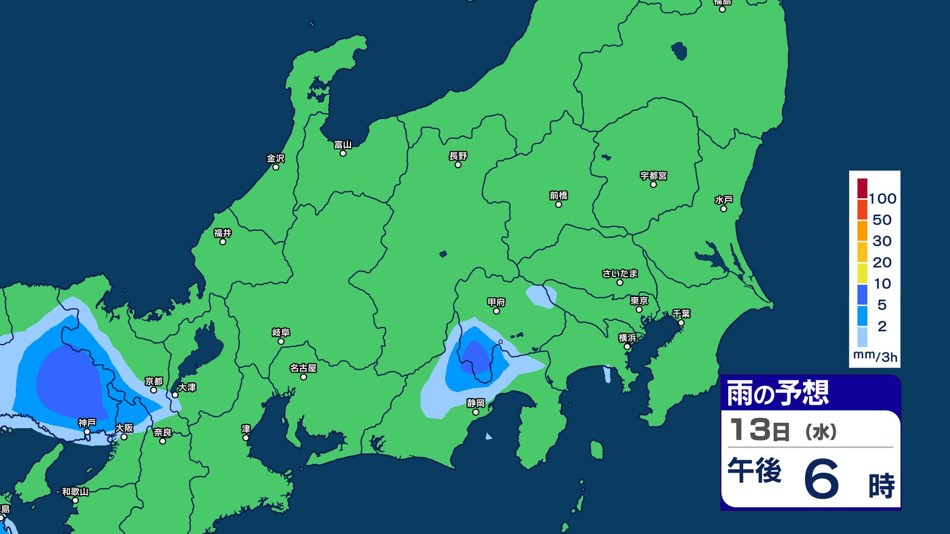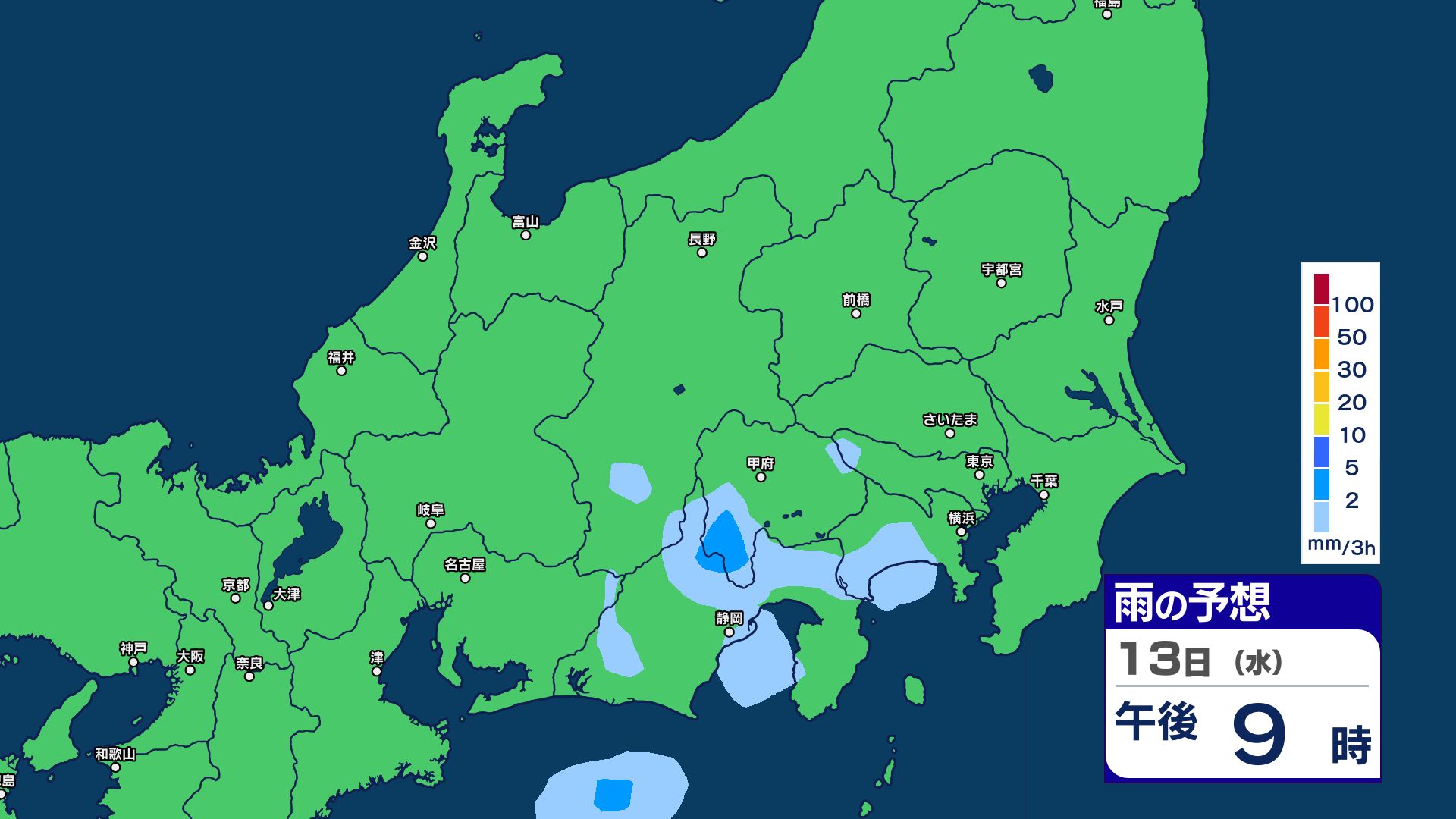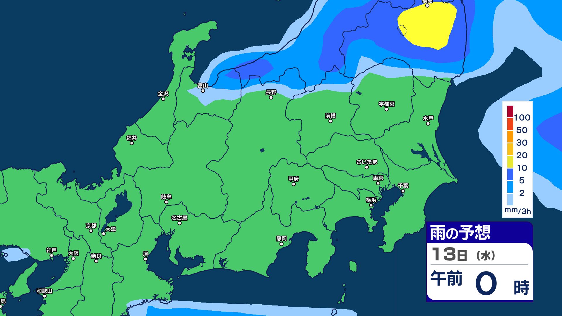 3. 【大雨情報】関東甲信 13日明け方にかけて土砂災害などに注意・警戒【雨のシミュレーション画像掲載】 関東南部60ミリ 甲信80ミリ(~13日午前6時・多い所)気象庁