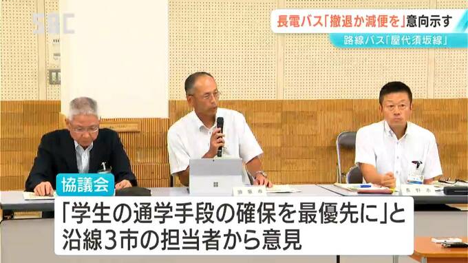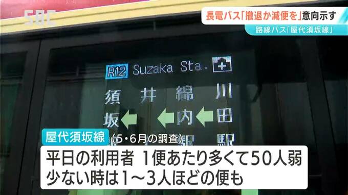 千曲市と須坂市を結ぶ路線バス「屋代須坂線」について運行を担う長電バスが、撤退もしくは減便したいとの意向を示しました。