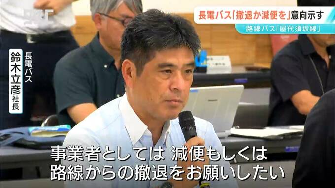 長電バス 鈴木立彦社長:「朝夕の通学時間帯には一定数の利用あるが、それ以外は一桁の利用しかない。事業者としては減便もしくは路線からの撤退をお願いしたい」