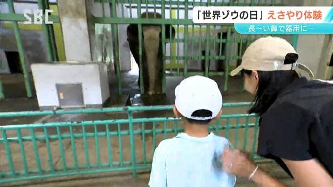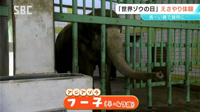 ゾウを身近に感じてもらおうと長野市の動物園ではえさやり体験が行われました。