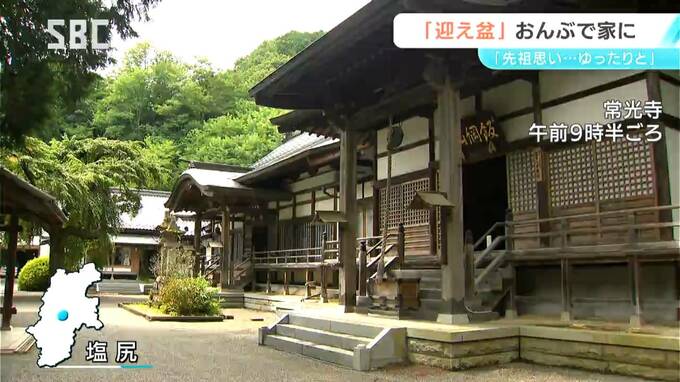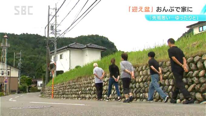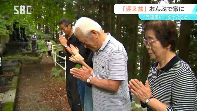 迎え盆のきょう(13日)、県内各地の霊園には、多くの人が墓参りに訪れました。塩尻市では、古くからの習わしとして草木の葉を先祖の霊に見立ておんぶして帰る人の姿もありました。