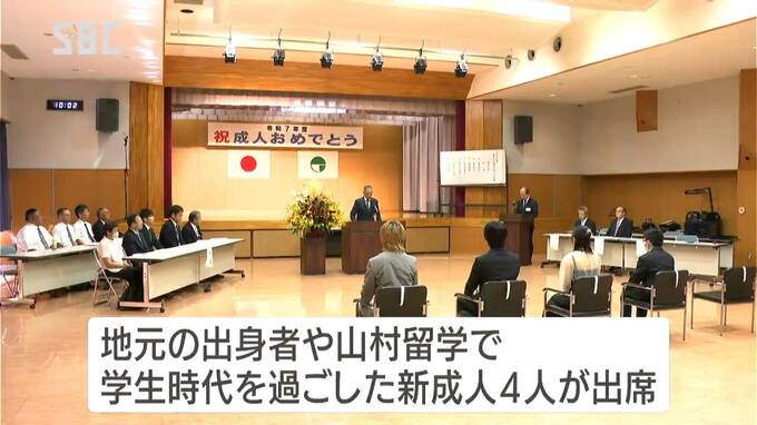 長野市の大岡地区で開かれた成人式には、地元の出身者や山村留学生として大岡で学生時代を過ごした新成人4人が出席しました。