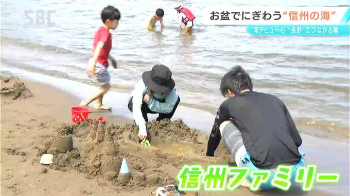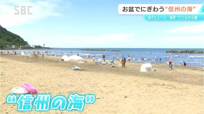 お盆に入り、長野県民が「信州の海」と呼ぶ新潟県上越市の海水浴場は家族連れでにぎわっています。