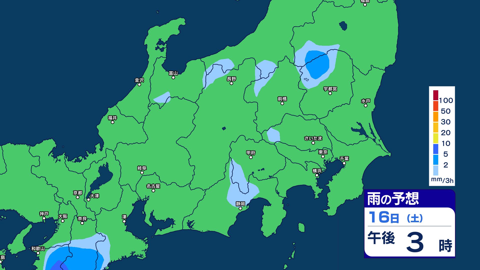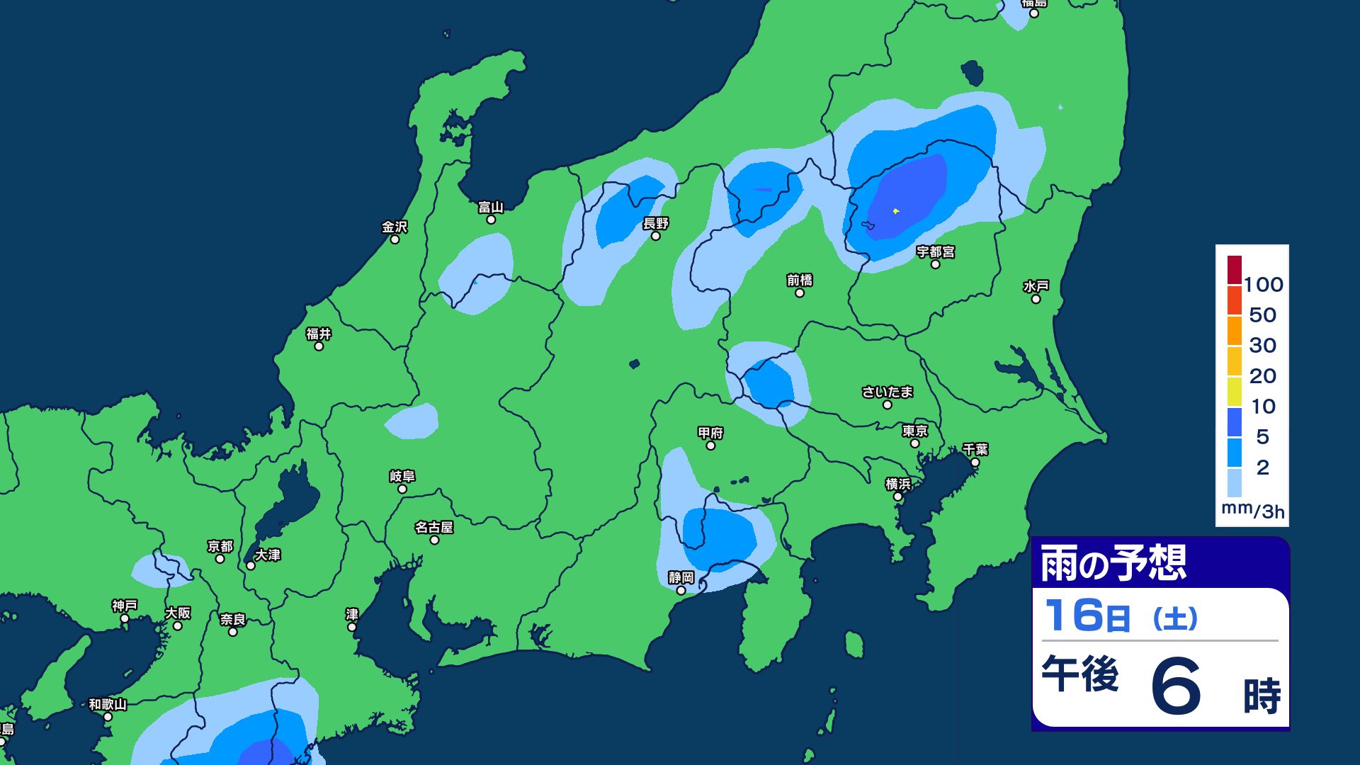 関東甲信地方では、15日夜遅くにかけてと、16日昼前から夜遅