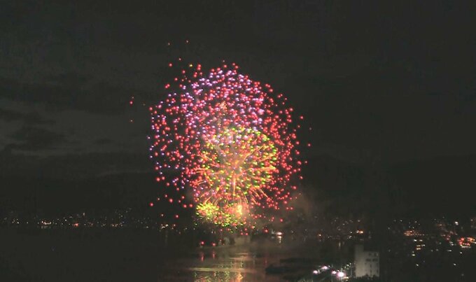 諏訪湖祭湖上花火大会が15日夜、諏訪市の諏訪湖畔で行われました。