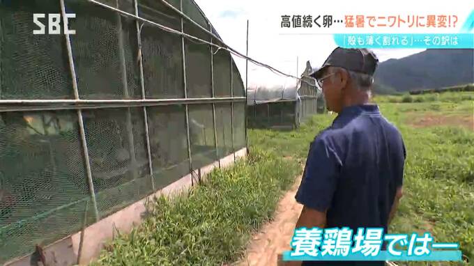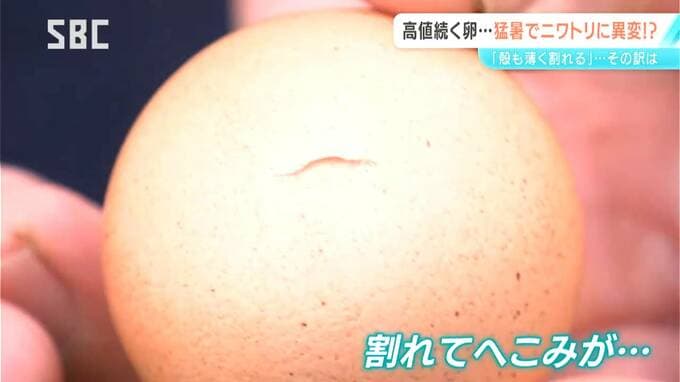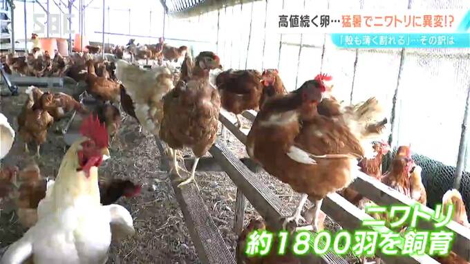 猛暑で、鶏は水分を多くとり餌をあまり食べないため、殻が弱い卵が例年より多いといいます。