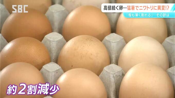 また、通常なら1日440個ほどの卵がとれるといいますが、今年の夏は1日350個ほど。およそ2割減っています。