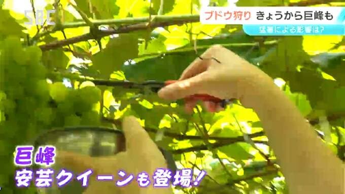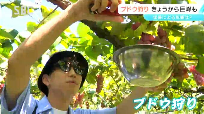 飯田市龍江の農園では先週からブドウ狩りが始まっています。20日からは、巨峰と安芸クイーンも収穫できるようになりました。