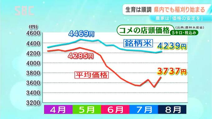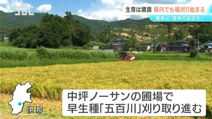 長野県内では早生品種の新米の稲刈りが始まっています。生産者はコメの価格の安定を期待しています。