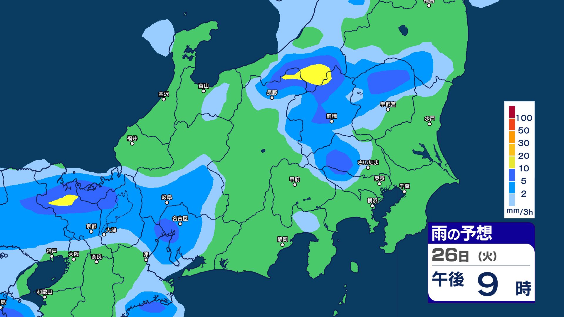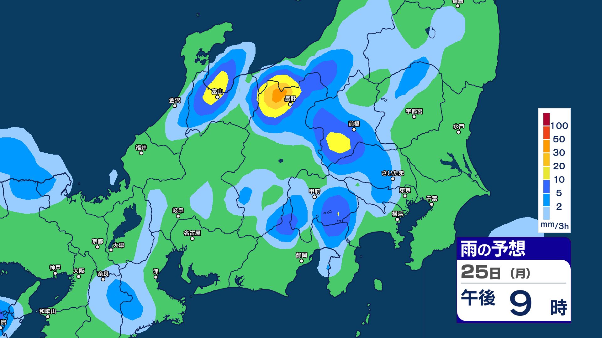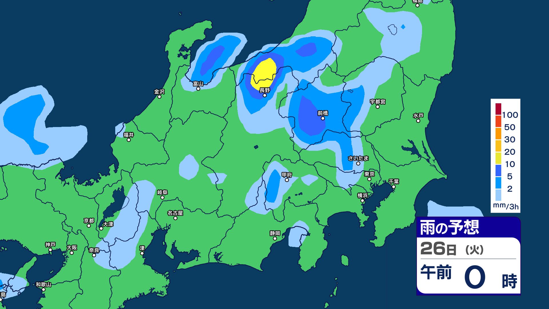 甲信地方 80ミリ