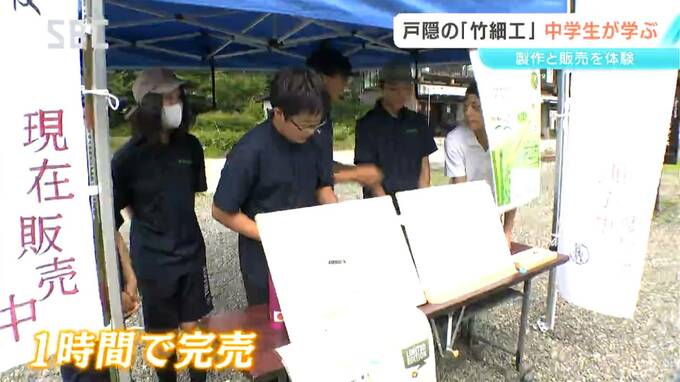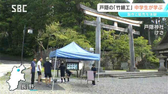 長野市戸隠地区の名産品竹細工を学んできた地元の中学生が自分たちで作った製品を販売しました。