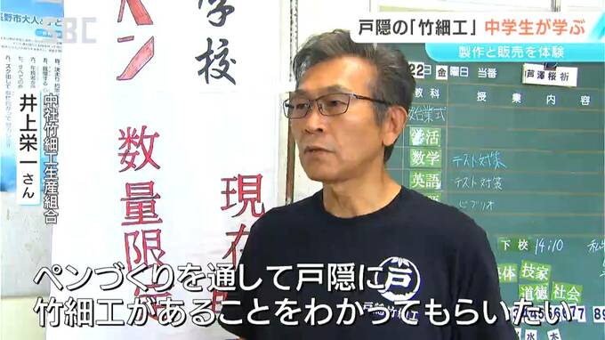 中社竹細工生産組合 井上栄一さん:「ペンづくりを通して戸隠に竹細工があることをわかってもらいたい。ものをつくる完成する喜びを味わってもらえればいいなと」