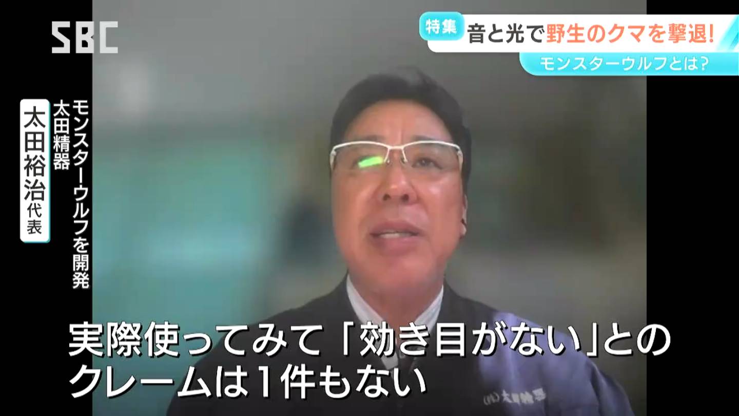 モンスターウルフを開発 太田精器 太田裕治代表:「(開発当初は)子供だましとか、オオカミのかかしとかよく言われたが、実際使ってみて効き目がないとのクレームは1件もない。問い合わせは年々増えている」